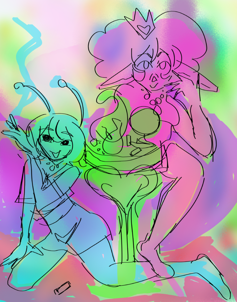 Don’t fret though — I have many colored drawings in my latest webzine! Check it out if you can handle it– it’s my thoughts and feelings about covid. It’s been a relief putting it all down. And I have fallen in love with one of my fictional covid conscious cuties!! At the very least, please appreciate the Dana image in the beginning.